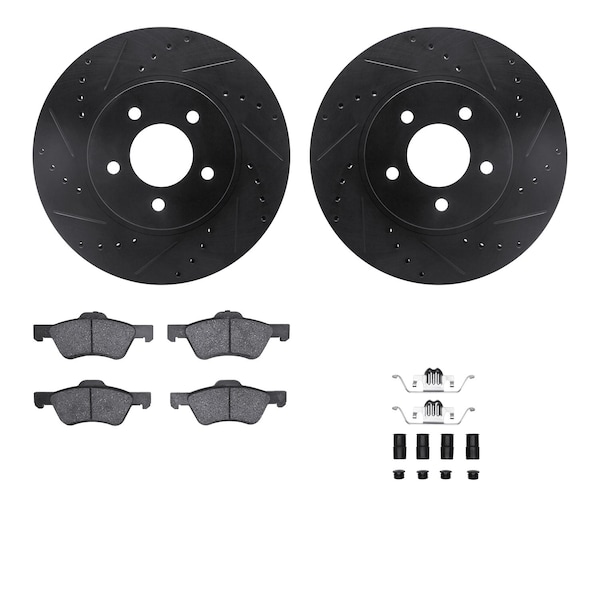DFC Brake Rotor - Dimpled & Slotted - Black w/5000 Brake Pads & HW Kit