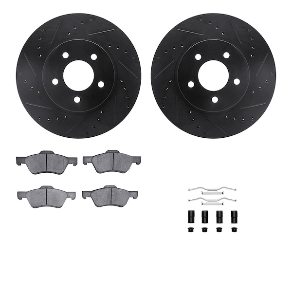 DFC Brake Rotor - Dimpled & Slotted - Black w/5000 Brake Pads & HW Kit