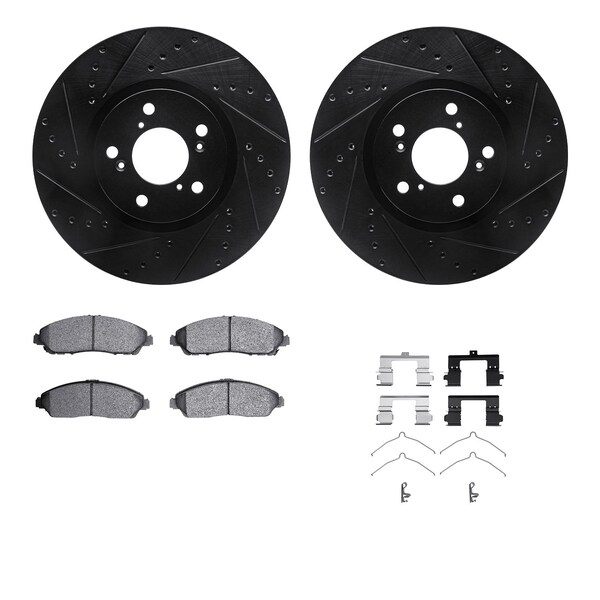DFC Brake Rotor - Dimpled & Slotted - Black w/5000 Brake Pads & HW Kit