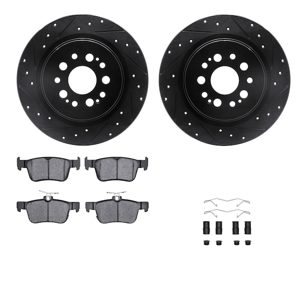 DFC Brake Rotor - Dimpled & Slotted - Black w/5000 Brake Pads & HW Kit