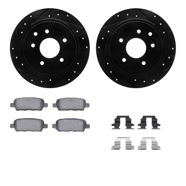 DFC Brake Rotor - Dimpled & Slotted - Black w/5000 Brake Pads & HW Kit