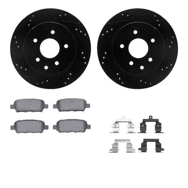 DFC Brake Rotor - Dimpled & Slotted - Black w/5000 Brake Pads & HW Kit
