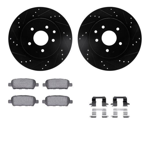 DFC Brake Rotor - Dimpled & Slotted - Black w/5000 Brake Pads & HW Kit
