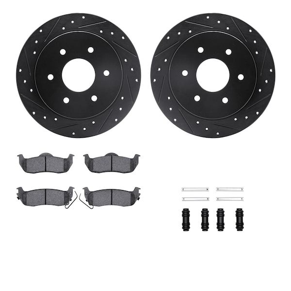 DFC Brake Rotor - Dimpled & Slotted - Black w/5000 Brake Pads & HW Kit