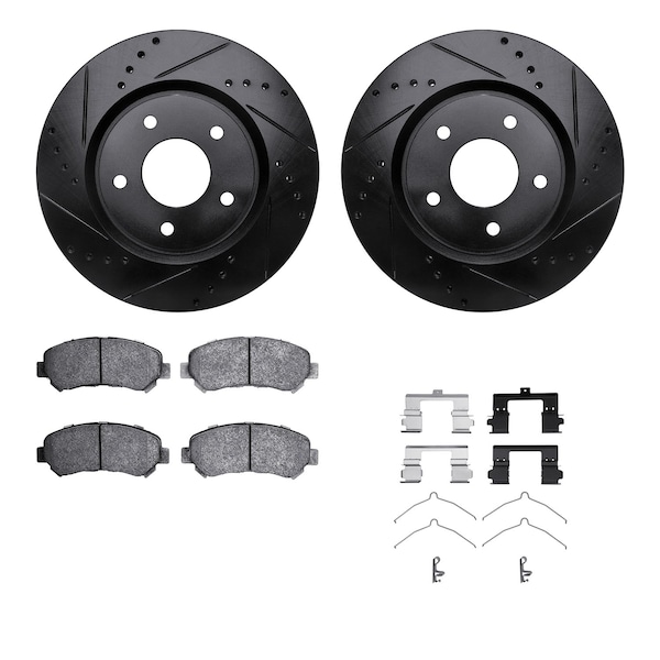 DFC Brake Rotor - Dimpled & Slotted - Black w/5000 Brake Pads & HW Kit