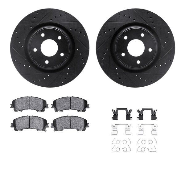 DFC Brake Rotor - Dimpled & Slotted - Black w/5000 Brake Pads & HW Kit