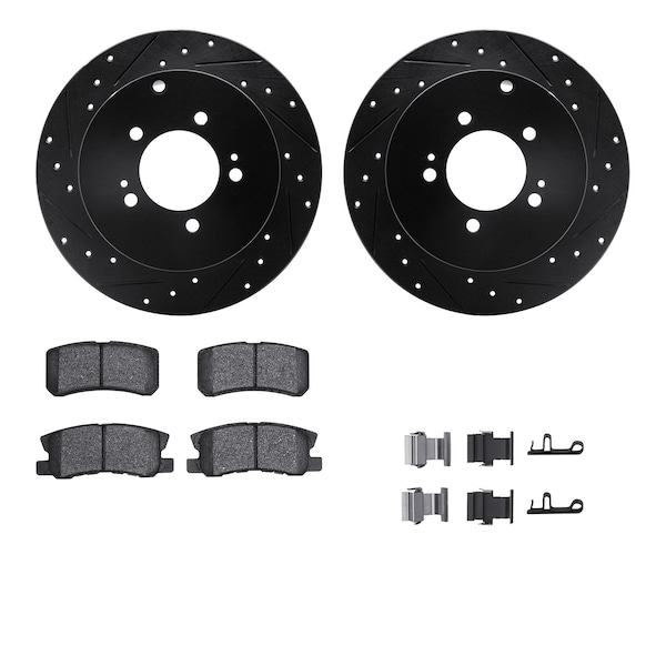 DFC Brake Rotor - Dimpled & Slotted - Black w/5000 Brake Pads & HW Kit