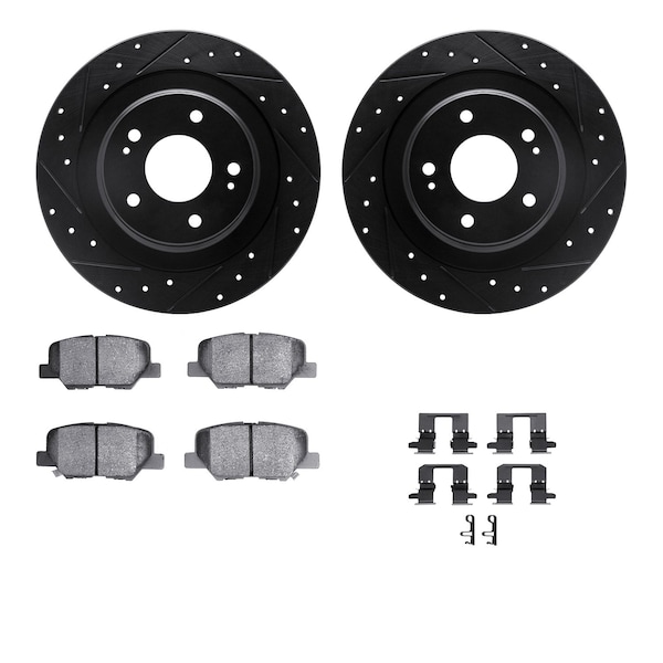 DFC Brake Rotor - Dimpled & Slotted - Black w/5000 Brake Pads & HW Kit