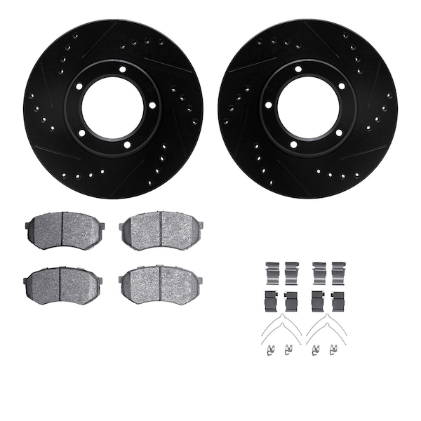 DFC Brake Rotor - Dimpled & Slotted - Black w/5000 Brake Pads & HW Kit