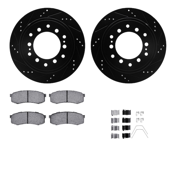 DFC Brake Rotor - Dimpled & Slotted - Black w/5000 Brake Pads & HW Kit