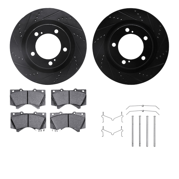 DFC Brake Rotor - Dimpled & Slotted - Black w/5000 Brake Pads & HW Kit