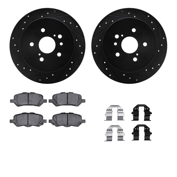 DFC Brake Rotor - Dimpled & Slotted - Black w/5000 Brake Pads & HW Kit