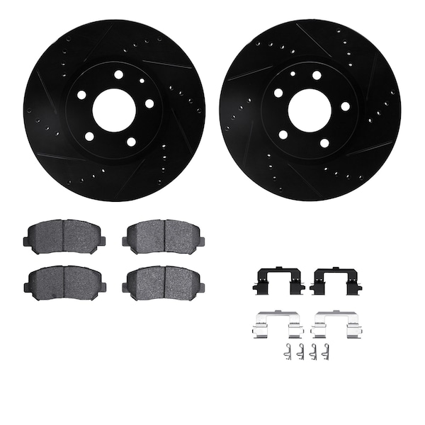 DFC Brake Rotor - Dimpled & Slotted - Black w/5000 Brake Pads & HW Kit