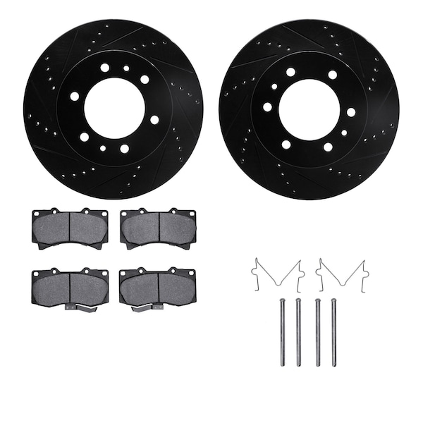 DFC Brake Rotor - Dimpled & Slotted - Black w/5000 Brake Pads & HW Kit