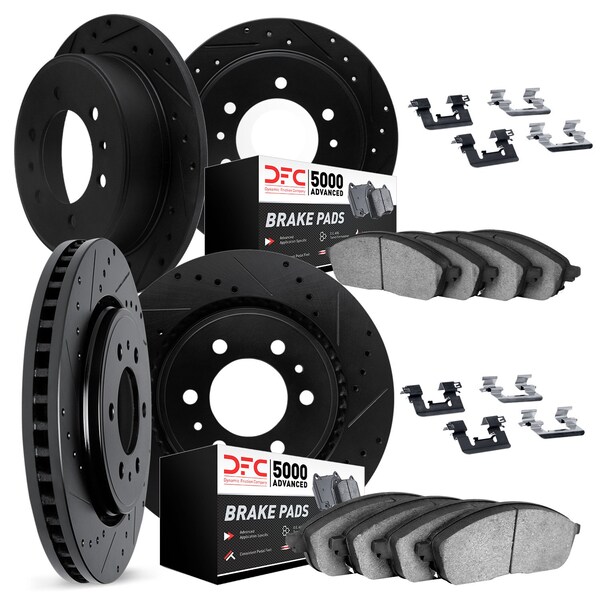 DFC Brake Rotor - Dimpled & Slotted - Black w/5000 Brake Pads & HW Kit