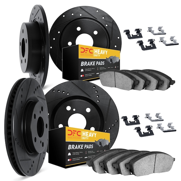 DFC Brake Rotor - Drilled & Slotted - Black- Heavy Duty Brake Pad includes Hardware