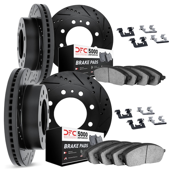 DFC Brake Rotor - Drilled & Slotted - Black w/5000 Brake Pads & HW Kit
