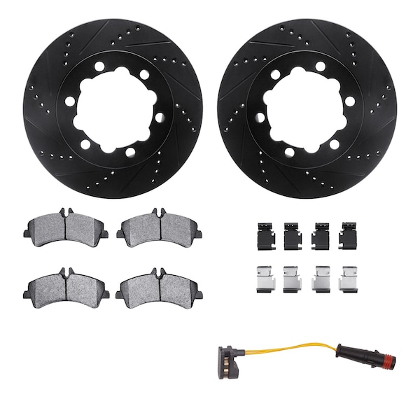 DFC Brake Rotor - Drilled & Slotted - Black w/HD Brake Pad w/HW Kit & Sensor