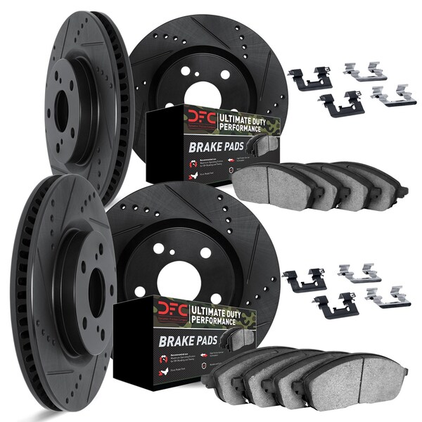 DFC Brake Rotor Drilled & Slotted - Black- w/Ultimate Duty Brake Pad & HW Kit