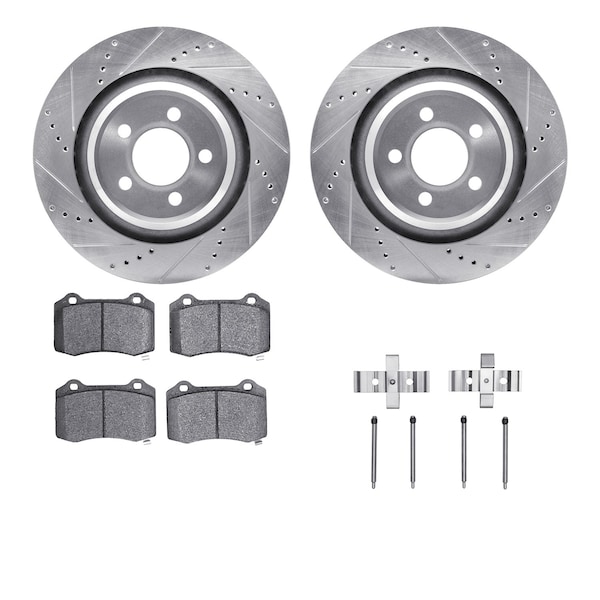 DFC Brake Rotor - Drilled & Slotted - Silver- Heavy Duty Brake Pad includes Hardware