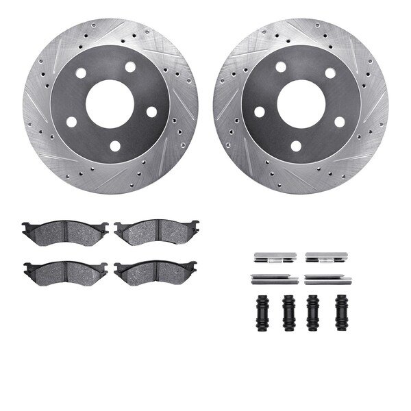 DFC Brake Rotor - Drilled & Slotted - Silver- Heavy Duty Brake Pad includes Hardware
