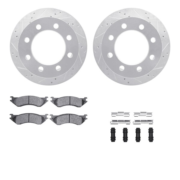 DFC Brake Rotor - Drilled & Slotted - Silver- Heavy Duty Brake Pad includes Hardware