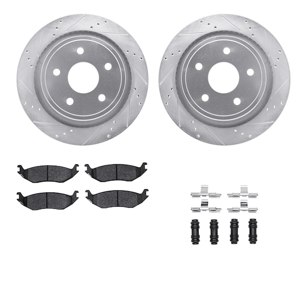 DFC Brake Rotor - Drilled & Slotted - Silver- Heavy Duty Brake Pad includes Hardware