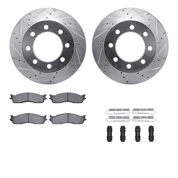 DFC Brake Rotor - Drilled & Slotted - Silver- Heavy Duty Brake Pad includes Hardware