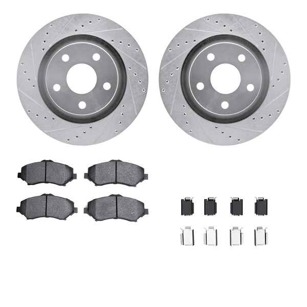 DFC Brake Rotor - Drilled & Slotted - Silver- Heavy Duty Brake Pad includes Hardware