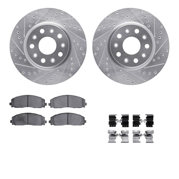 DFC Brake Rotor - Drilled & Slotted - Silver- Heavy Duty Brake Pad includes Hardware