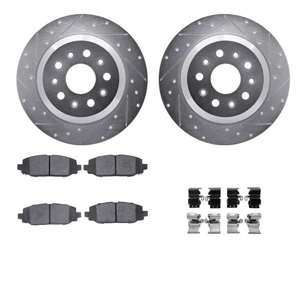 DFC Brake Rotor - Drilled & Slotted - Silver- Heavy Duty Brake Pad includes Hardware