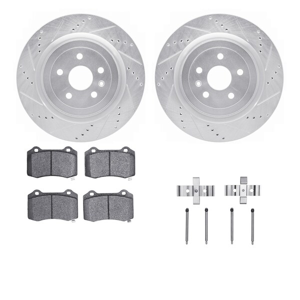 DFC Brake Rotor - Drilled & Slotted - Silver- Heavy Duty Brake Pad includes Hardware