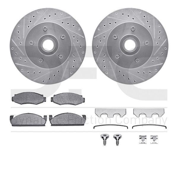DFC Brake Rotor - Drilled & Slotted - Silver- Heavy Duty Brake Pad includes Hardware