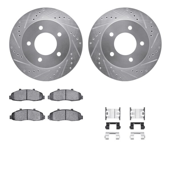 DFC Brake Rotor - Drilled & Slotted - Silver- Heavy Duty Brake Pad includes Hardware