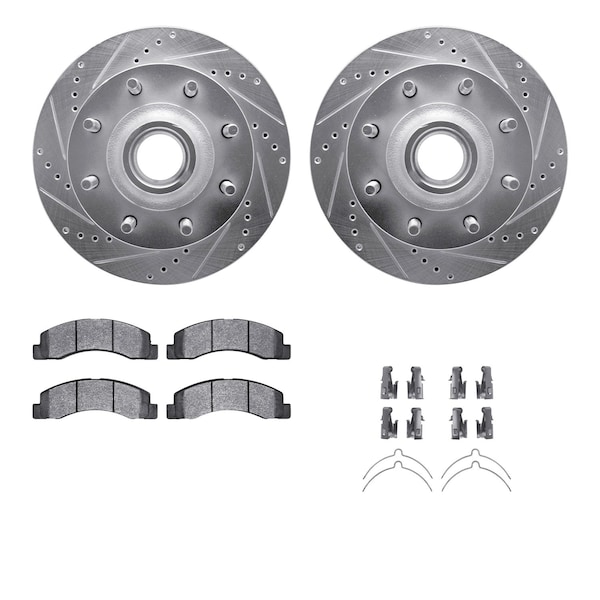 DFC Brake Rotor - Drilled & Slotted - Silver- Heavy Duty Brake Pad includes Hardware