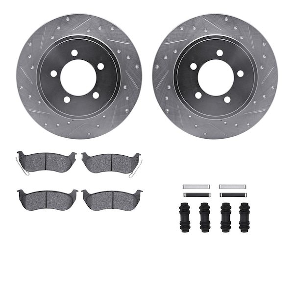 DFC Brake Rotor - Drilled & Slotted - Silver- Heavy Duty Brake Pad includes Hardware