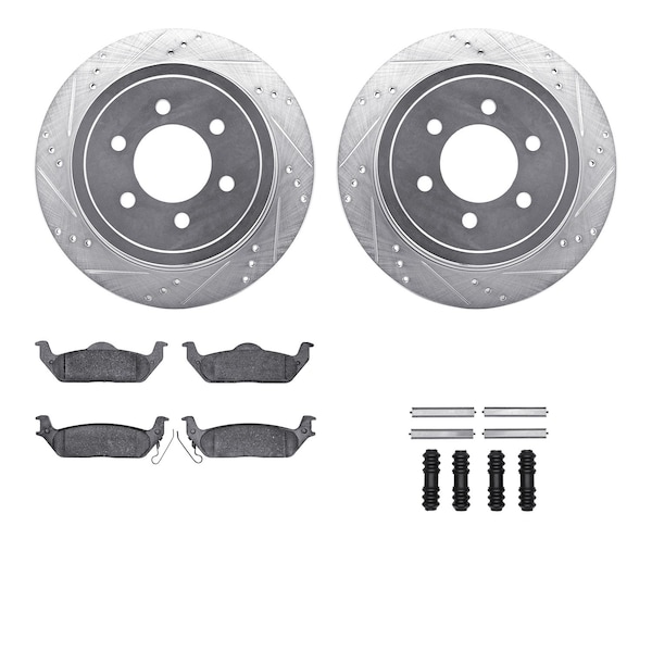 DFC Brake Rotor - Drilled & Slotted - Silver- Heavy Duty Brake Pad includes Hardware