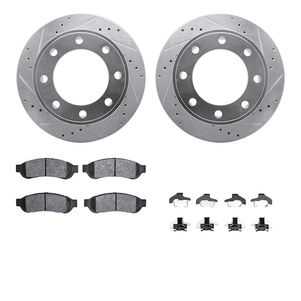 DFC Brake Rotor - Drilled & Slotted - Silver- Heavy Duty Brake Pad includes Hardware