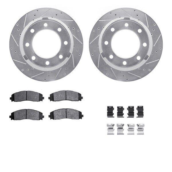 DFC Brake Rotor - Drilled & Slotted - Silver- Heavy Duty Brake Pad includes Hardware