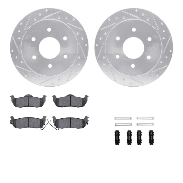 DFC Brake Rotor - Drilled & Slotted - Silver- Heavy Duty Brake Pad includes Hardware