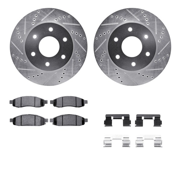 DFC Brake Rotor - Drilled & Slotted - Silver- Heavy Duty Brake Pad includes Hardware