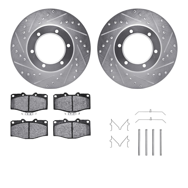 DFC Brake Rotor - Drilled & Slotted - Silver- Heavy Duty Brake Pad includes Hardware
