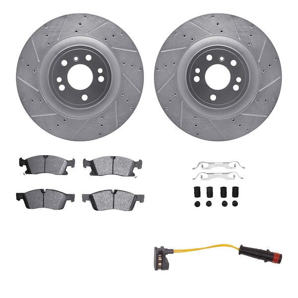 DFC Brake Rotor - Drilled & Slotted - Silver w/HD Brake Pad w/HW Kit & Sensor