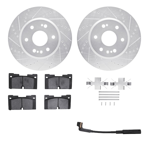 DFC Brake Rotor - Drilled & Slotted - Silver w/HD Brake Pad w/HW Kit & Sensor
