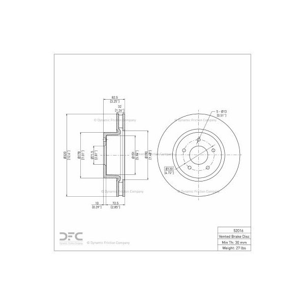 DFC GEOSPEC Coated Rotor - Blank - Dynamic Friction Company 604-52016 (Discontinued)