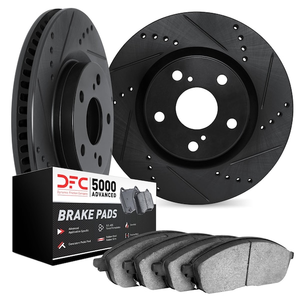 DFC Rotors-Drilled and Slotted-Black with 5000 Advanced Brake Pads