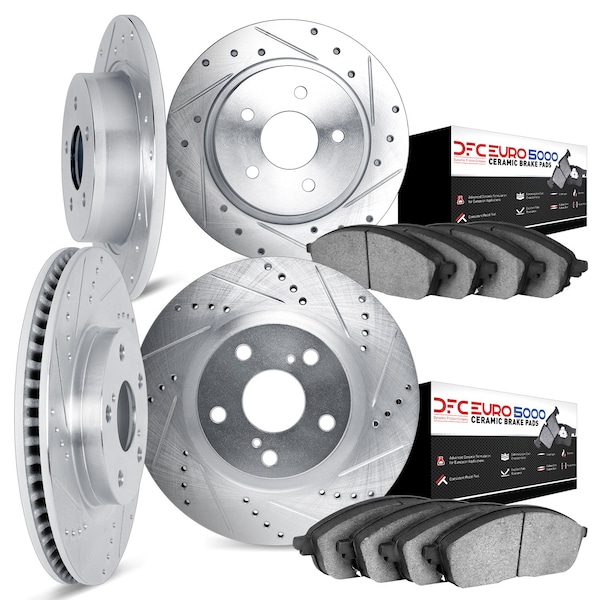 DFC Rotors-Drilled and Slotted-Silver with EURO 5000 Ceramic Brake Pads