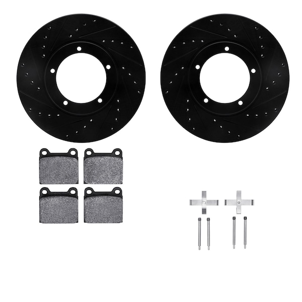 DFC Rotors-Drilled & Slotted-Black w/ 5000 Advanced Brake Pads Incl Hdw