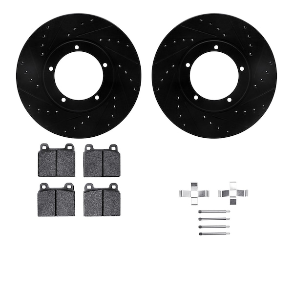 DFC Rotors-Drilled & Slotted-Black w/ 5000 Advanced Brake Pads Incl Hdw