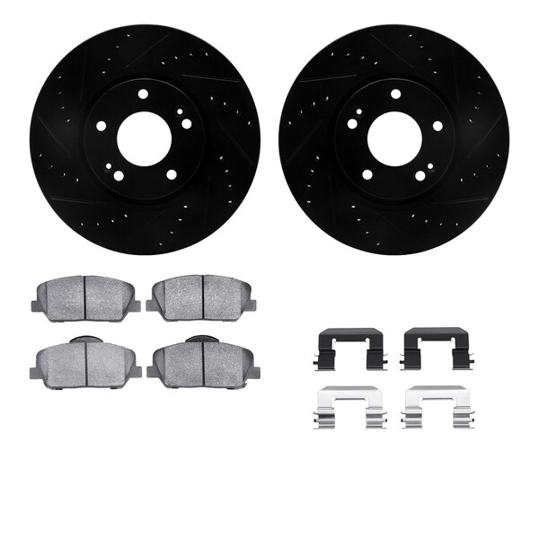 DFC Rotors-Drilled & Slotted-Black w/ 5000 Advanced Brake Pads Incl Hdw